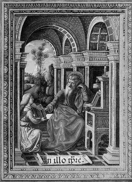 Рис. 1.4. Евангелист Матфей. Миниатюра из «Sforza Hours». Якобы конец XV — начало XVI века. Взято из [1075:1], с. 396.