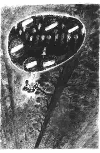 Поэтому я снова спустился в сумеречную область, двигаясь от ветви к ветви вокруг ствола и высматривая внизу траекторию свободного падения. Несколькими ветвями ниже я ее нашел – идеальную траекторию полета, глубокую, как колодец шахты, строго перпендикулярную земле, где узловатые корневища
