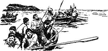 Кто-то бежал из моря навстречу ватажникам и резал воду высоким черным плавником, пряча тело в море. Кто же это? Не спешило ли морское чудо, чтобы напасть на людей? Биармины заволновались и показывали руками, что не нужно биться. И вепсин приказал, чтобы повольники не трогали морское чудовище, а поворачивали к берегу.