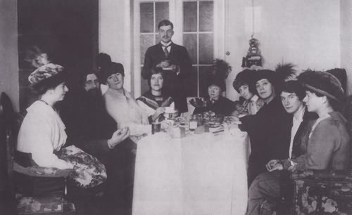 Григорий Распутин за столом с группой своих почитателей. 1914 г.