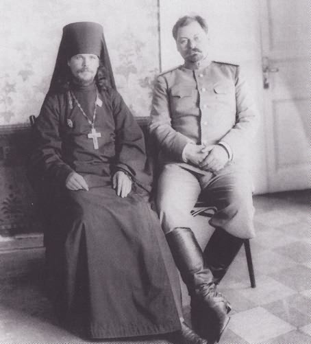 Иеромонах Илиодор (Сергей Михайлович Труфанов) и полицейский офицер Е. Е. Долгушин. 1911 г.