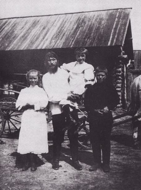Григорий Распутин со своими детьми Матреной, Варварой и Дмитрием в селе Покровском. 1900-е гг.