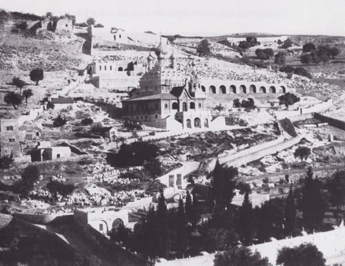 Вид на русский участок в Гефсимании с храмом св. Марии Магдалины.