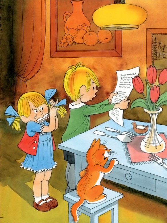 И тут вдруг дети увидели на кухонном столике большой лист бумаги, на котором твёрдым папиным почерком было написано: