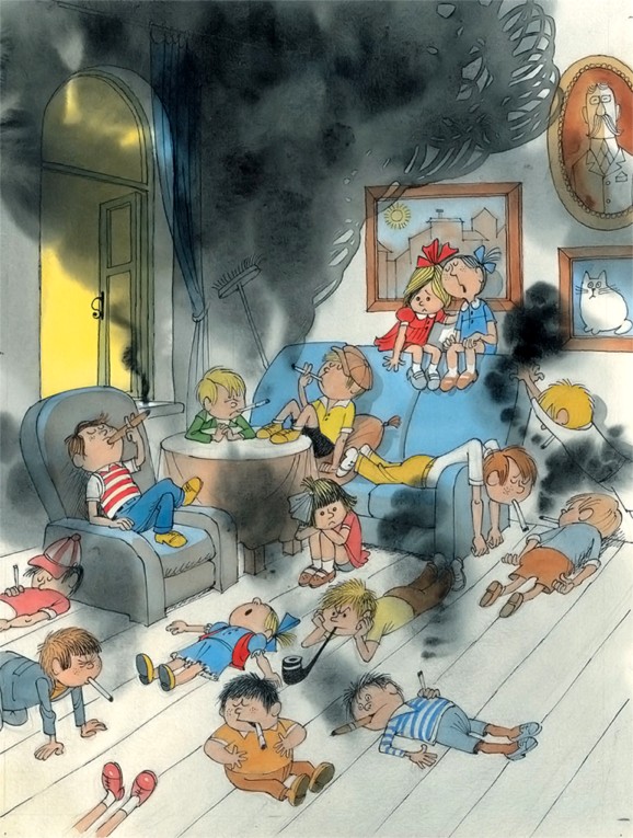 Несмотря на раскрытое окно, дети в комнате так накурили, что с трудом различали друг друга. Девочки, которые сами не курили, кашляли, задыхаясь в табачном дыму, но терпели.