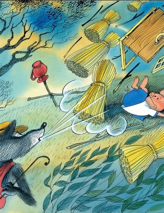 Ниф-Ниф первый добежал до своей соломенной хижины и едва успел захлопнуть дверь перед самым носом волка.