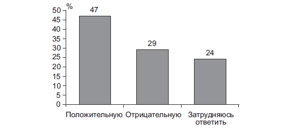 Широкий общественный резонанс вызывает проводимая на 5-м канале передача «Суд времени», построенная как столкновение двух обозначенных позиций. Фигуранты полемики – Л. Млечин и С. Кургинян. Несмотря на то, что либеральный концепт номинировал в значительной части учебников, здесь видно, что отношение народа совсем другое. Иначе как провал либеральной идеологии в России результаты народного голосования по оценке прошлого невозможно классифицировать. Народ навязываемой версии изложения истории не принял (рис. 4).