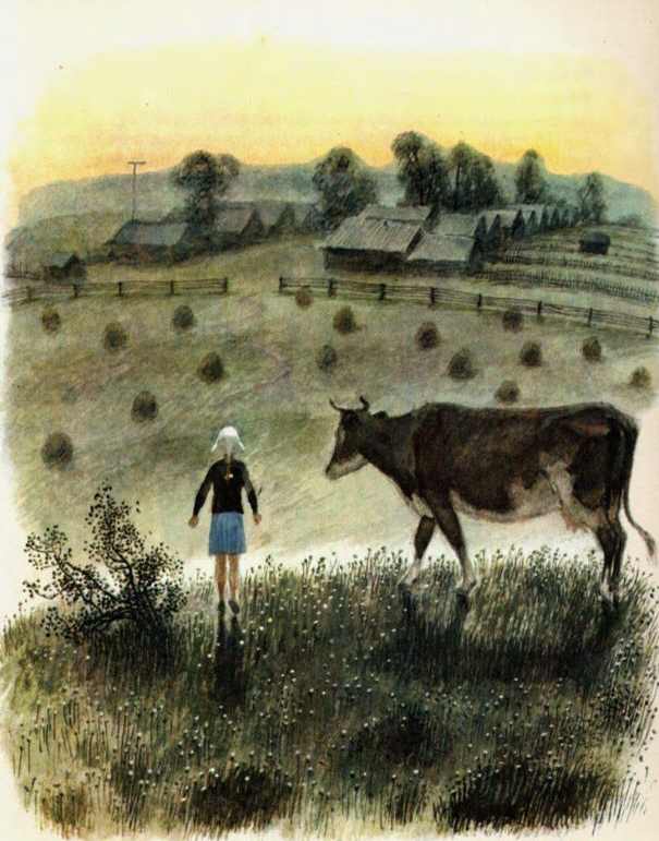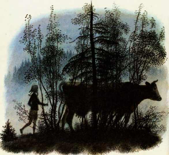 — Мамушки! Так это же за нами… Так это же всей деревней ищут нас! — догадалась Оля и, не зная, то ли трусить, то ли радоваться, давай свою рогатую товарку поторапливать.