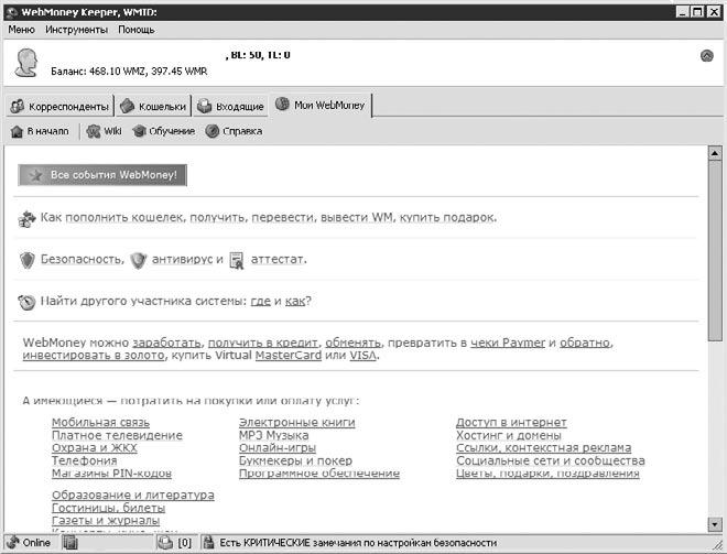 Самый удобный и функциональный вариант – WebMoney Keeper Classic (рис. 2.2). Данное приложение устанавливается на ваш компьютер и управляется операционной системой Windows. Если по каким-либо причинам вы не можете установить программу на компьютер, используйте WM Keeper light, который позволяет работать с WebMoney через браузер.