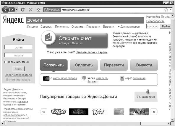 Использовать «Яндекс. Деньги» можно через браузер либо программу «Интернет. Кошелек» (рис. 2.5). Большинство пользуются доступом через браузер.