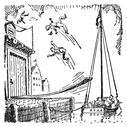 Я виходжу й бачу: зробила моя катапульта своє діло, та ще й як! Тут на березі була радіостанція, то цих негідників закинуло на самий верх, на щоглу. Вони там зачепились штанами, висять і галасують на все місто.