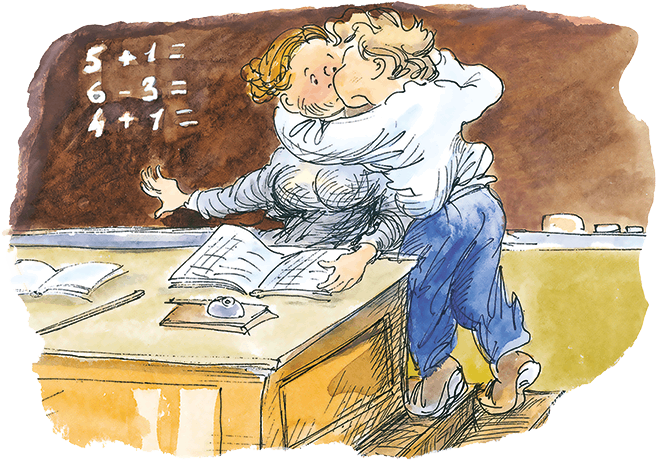Так он и сделал, но перед этим подошёл к учительнице, сидевшей за кафедрой, и поцеловал её. С ней никогда ещё ничего подобного в классе не случалось, она залилась краской и спросила, запинаясь:
