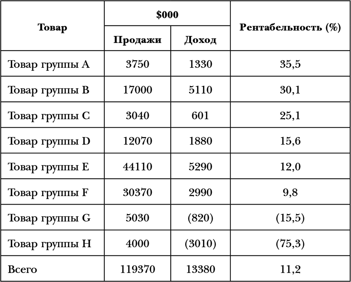 Обычно некоторые товары, представляющие малую часть вашего товарооборота, имеют очень высокую доходность. После распределения затрат по категориям