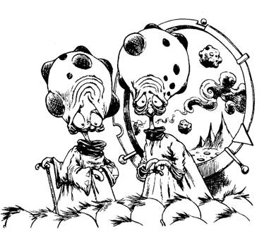 — Привет тебе, маленький землянин! — сказало первое, дружелюбно поднимая щупальце. — Мы плюхоголовы с Плюха. Второе, третье и… тридцать восьмое чудо космоса. Моё имя Керек. Это — Зерек. А это, — он пренебрежительно ткнул щупальцем, — это Дерек.