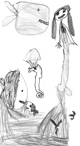 «…но это еще не все. Она поняла, что стоит на крокодиле, только когда зажглись внезапно два его огромных глаза, и он все пытался так извернуться, чтобы ослепить ими Ваксу и свалить в воду, но собачка продолжала держаться стойко, зажмурившись, не переставая думать о Маше, нужно было только дождаться утра. Утром, она это твердо знала, крокодильи глаза погаснут и взойдет солнце…»