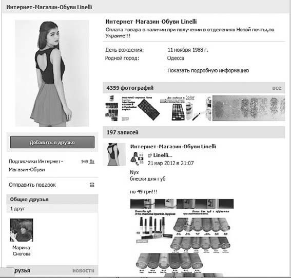 У каждого человека в ВКонтакте есть свой профиль (личная страница). Теоретически вы можете создать личную страницу вашего бренда – аккаунт, который будет называться, например, «Интернет-магазин подарков» (рис. 13).