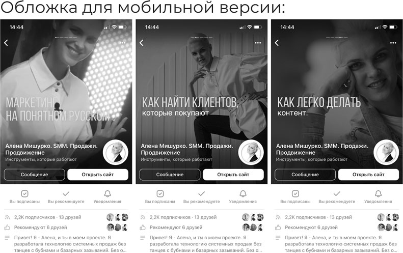 • Оформите их обложками. Это, как и визитка, посты и сайт – лицо вашего проекта.