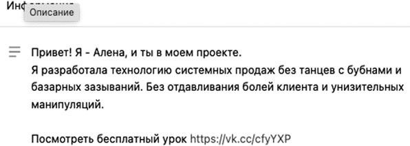 !Важно – сокращайте ссылки, чтобы они не занимали половину объема. У Вконтакте удобный сервис для сокращения любых ссылок: https://vk.com/cc.