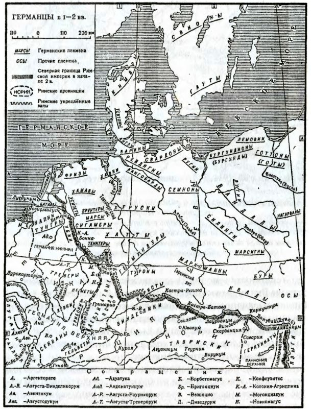 Готы, представлявшие собой коалицию нескольких восточногерманских племен, выселились из Скандинавии. Двигаясь на юг, к северо-западным берегам Черного моря, они подразделились на западных (вестготов) и восточных (остготов). Вестготы осели на Дунае, в области между устьем Дуная и Днестра; остготы заняли область между Днестром и Днепром.