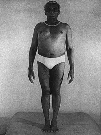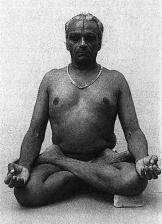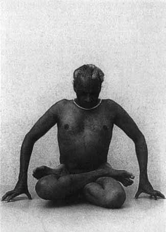 21. В Тадасане (фото 25) (см. «Прояснение Йоги») необходимо создавать пространство в теле от основания лобковой кости до пупка и делать эту область плоской. Выполняя позы сидя, воспроизводите вытяжение Тадасаны. Всегда вытягивайте тело спереди от позвоночника, начиная от ануса до лобковой кости и далее к пупку, диафрагме, грудине и, наконец, к межключичной впадине. Если лобковая кость находится в неправильном положении, теряется чистота выполнения позы сидя и практика утрачивает свою точность. Когда грудная клетка правильно вытягивается, легкие функционируют эффективно, и в организм поступает больше кислорода. Все препятствия, возникающие в тонких каналах (нади), по которым движется праническая энергия, устраняются, и энергия, поступившая в организм при вдохе, свободно течет по всему телу. Как солнечный диск излучает потоки света одинаково во всех направлениях, так и Суть излучает жизненную энергию вдыхаемого воздуха во все уголки легких, если грудина хорошо поднята и вытягивается.