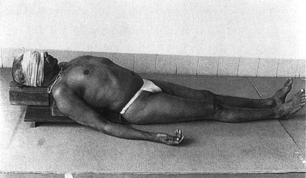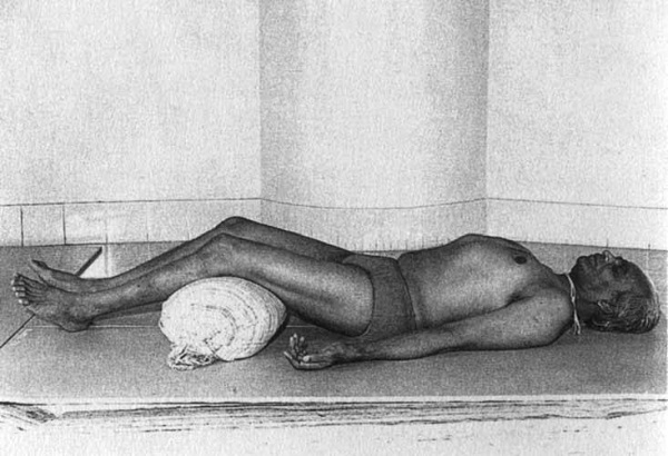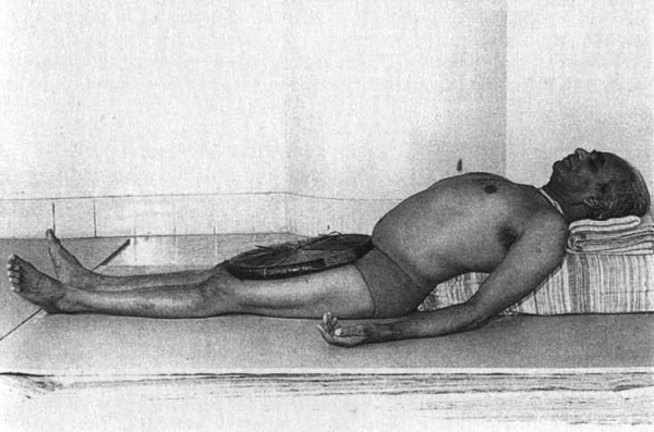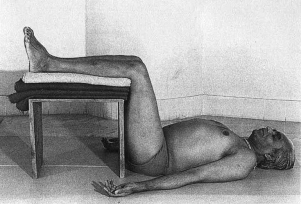 Когда спина находится в таком положении, вдох начинается от мышц в области таза. Это снимает любое напряжение и смягчает диафрагму. Легкие и дыхательные мышцы действуют мягко, и дыхание становится глубоким. Практика этой пранаямы приносит большое облегчение больным с увеличенным сердечным желудочком и врожденными пороками сердца. Более того, она успокаивает страх, который возникает у сердечных больных, опасающихся, что малейшее движение ухудшит их состояние.