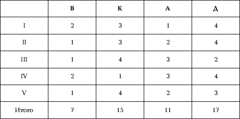 Третий этап. Сравните общий счет, и это даст относительное преобладание (иерархию) каждой репрезентативной системы.