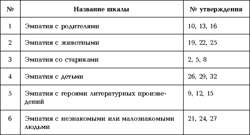 Интерпретация результатов. Методика определяет общий уровень эмпатии, а также выделяются такие параметры эмпатического состояния, как эмпатия с родителями, животными, со стариками, с детьми, героями литературных произведений, незнакомыми и малознакомыми людьми.