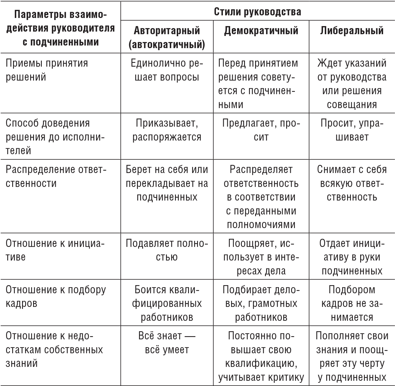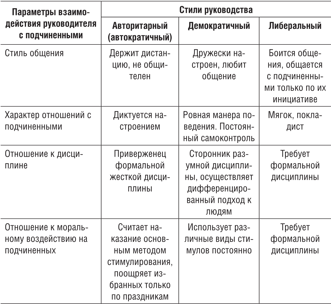 Внутри этого континуума располагаются различные варианты третьего основного стиля руководства – демократического. Согласно сложившейся традиции, именно он, а не либеральный, попустительский чаще всего анализируется в сравнительном плане с авторитарным стилем. Дело в том, что попустительский стиль намного менее эффективен, чем первые два, что заставляет большее внимание уделять именно авторитарному и демократичному стилям руководства 21 .