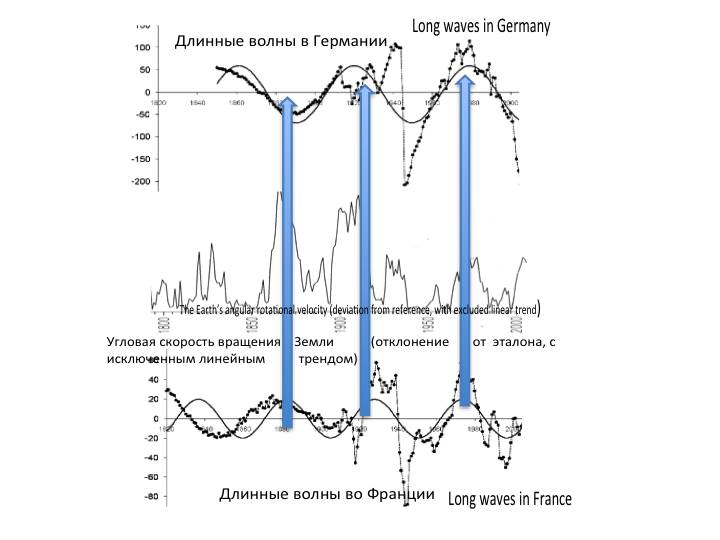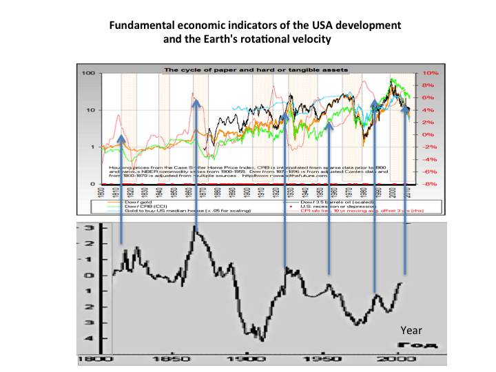 The system of such graphs has been obtained for different countries and for different economic and financial indicators. It leaves no doubt that the Earth's rotational velocity reflects powerful cosmic energies.