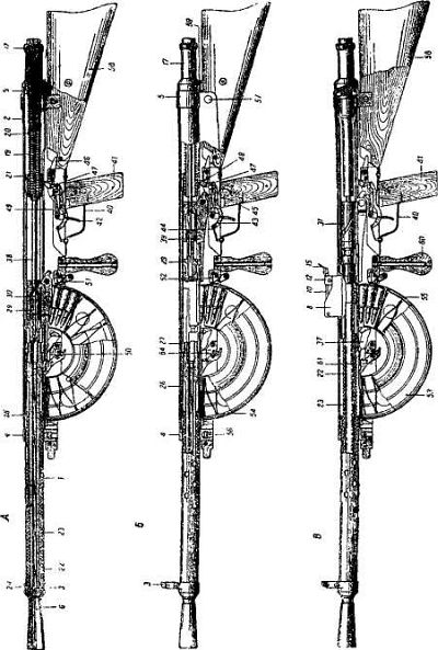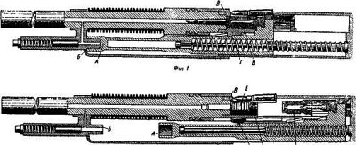 Ударно-спусковой механизм куркового типа с винтовой боевой пружиной допускал ведение одиночного и автоматического огня. Рычажки флажкового