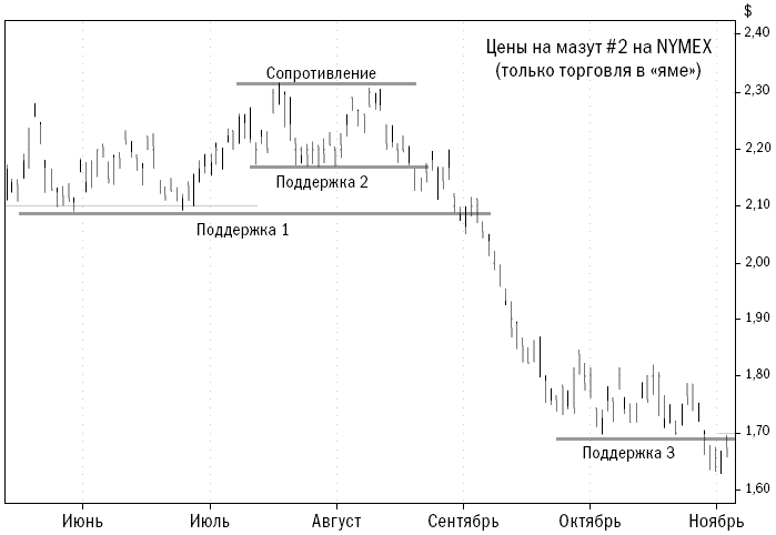 Рисунок 6–2. Движение цен на мазут, июнь – ноябрь 2000 г. Прорыв уровня поддержки