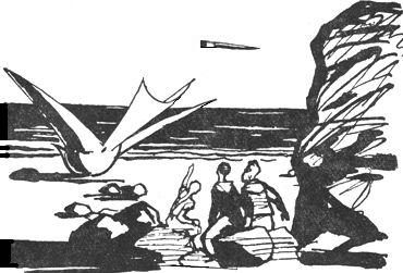 Все произошло так быстро,что мальчики, увлеченные купанием, ничего не заметили. Но сидящие под скалой Флер и ученый услышали удаляющийся свист и вскочили.