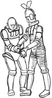 Тяжело ступая по лестнице летательного аппарата,из кабины спустился робот Горено.