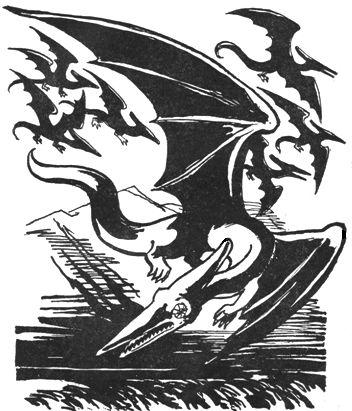 — Пожалуй, их можно назвать птерозаврами,- сказад Волшебник,- хотя я представлял себе их несколько иначе… Крылатые ящерицы. Да, да, гигантские крылатые ящерицы! Подобные твари жили на Земле в Юрском периоде…