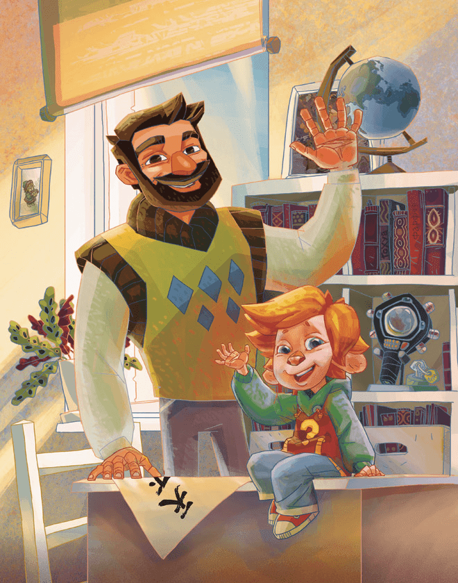 Здравствуйте, ребята! Меня зовут Чевостик. Я живу на книжной полке в библиотеке дяди Кузи. Не удивляйтесь: я маленького роста, а нижняя полка в книжном шкафу дяди Кузи высокая и просторная, поэтому мне на ней очень удобно. Какой я? Похож на обыкновенного мальчишку, волосы у меня рыжие, а характер весёлый. Больше всего на свете люблю узнавать новое, поэтому всё время задаю дяде Кузе разные вопросы. О чём бы я ни спросил, он всё знает и мне рассказывает. Это потому, что дядя Кузя очень умный. Он прочитал много-много разных книг. А ещё мы с ним любим путешествовать! В путешествиях нам помогает времяскок. Это такой прибор, его дядя Кузя изобрёл. Набираешь на времяскоке место и время, куда хочешь попасть, раз, два – и уже там. Сегодня мы наверняка тоже куда-нибудь отправимся!
