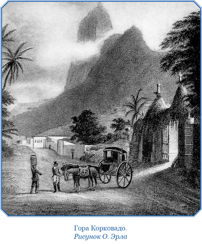 19 апреля. Оставив Сосего, мы первые два дня возвращались по старому пути. Это было очень скучно, так как дорога проходила преимущественно по ослепительной и знойной песчаной равнине недалеко от берега. Я заметил, что всякий раз, когда моя лошадь ступала по мелкому кремнистому песку, слышался слабый чирикающий звук. На третий день мы свернули на другую дорогу и проехали через живописную деревушку Мадре-де-Деос. Это одна из главных дорог в Бразилии, но она была в таком плохом состоянии, что ни один колесный экипаж, кроме разве фургона топорной работы, запряженного волами, не мог бы по ней проехать. За всю нашу поездку мы не встретили ни одного каменного моста, а мосты из деревянных брусьев были зачастую в таком неисправном состоянии, что приходилось делать объезды стороной. Точные расстояния здесь совершенно неизвестны. По дороге вместо верстовых столбов часто попадаются кресты, отмечающие места, где была пролита человеческая кровь. Вечером 23-го мы прибыли в Рио, закончив, таким образом, нашу небольшую приятную прогулку.