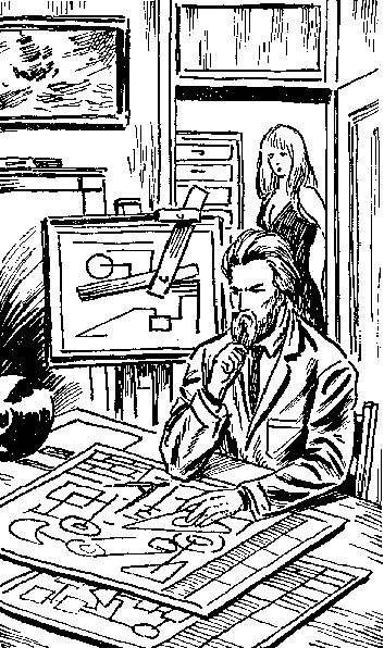 Через открытую дверь Луиза видела, как он открыл сейф, достал с полки большой желтый портфель с серебряной монограммой, извлек из него пачку чертежей и, развернув их перед собой, углубился в какие-то подсчеты.
