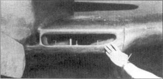 Другой результат аэродинамических исследований NACA — значительно увеличенный воздухозаборник водяного радиатора, в сравнении со старым воздухозаборником на Р-63 А-1(слева).