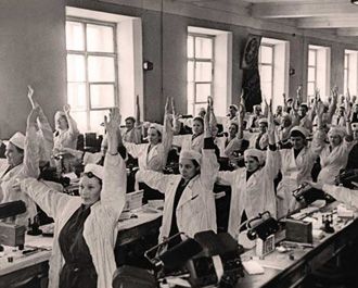 В обед просто необходимо сделать так называемую «Производственную гимнастику», кстати, вы можете быть начинателем такой традиции в вашем коллективе, вообще если руководство вменяемое, то поддержит вас, так как подобная разминка повышает работоспособность и это известно каждому образованному директору. Если вам это кажется чем-то сверхъестественным, то отправьтесь в исторический экскурс по времена СССР, когда еще подобная гимнастика была распространена повсеместно. Помните, по всесоюзному радио в 11–00 можно было услышать знакомые: «…ноги на ширине плеч, руки в стороны…». Те люди, которые вводили производственную гимнастику на таком уровне были очень мудры и знали что делают, жаль традиция сейчас не поддерживается, а было здорово. Вторую половину дня и возвращение домой постройте также: разминки, потягивания, ходьба на улицу и по коридору, ходьба до дома минимум 10–15 минут.