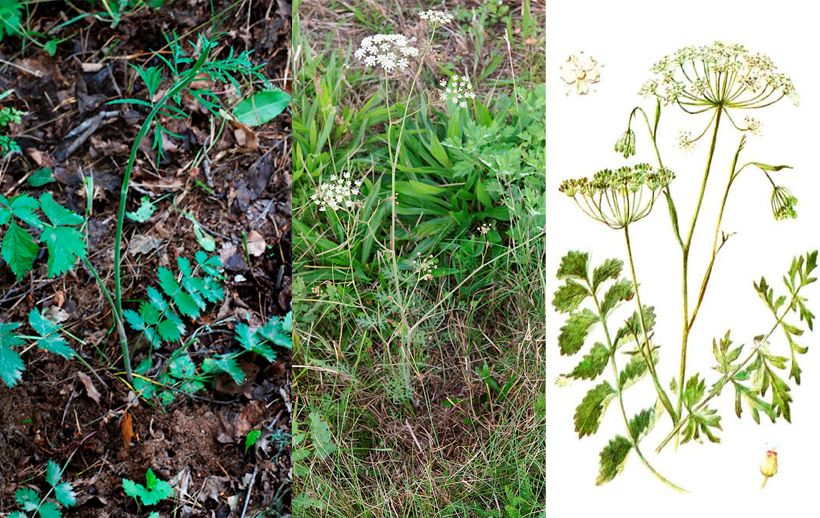 И не спутайте с вехом ядовитым. Токсичен при употреблении внутрь. Он имеет более длинные и узкие листья, более разветвленные, обычно еще на три части, розетки цветов не такие шарообразные, но самое главное, что может его выдать — это поперечные перегородки на корневище, которых у дудника точно нет.