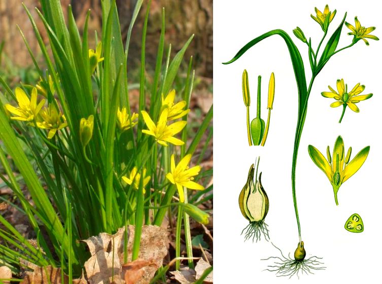 Луковица одна, продолговато-яйцевидная, с буровато-серыми оболочками. Стебель плотный, голый, высотой 15–25 см. Прикорневой лист плоский, одиночный, превышает соцветие, широколинейный, шириной 3–9 мм, коротко заострённый, с башлыковидной верхушкой; верхний — линейный или ланцетный, снизу килеватые. Соцветие зонтиковидное. Цветков 2—16 на неровных прямостоячих цветоножках; листочки околоцветника продолговатые или линейно-продолговатые, длиной 10–16 мм, снаружи зеленоватые, внутри жёлтые; внешние зеленовато-жёлтые, тупые. Плод — трёхгранная плёнчатая коробочка.