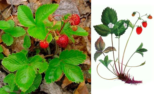 Листья тройчатые, на длинных (достигающих высоты в 10 см) стебельках; побеги ползучие, укореняющиеся. Корневая система мочковатая, глубина залегания корней — 20–25 см. Соцветие — многоцветковый щиток, с белыми лепестками.