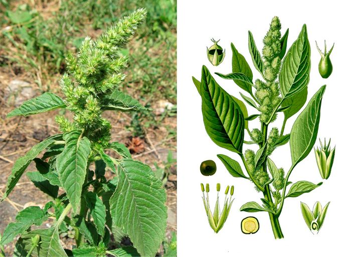 Однолетнее травянистое растение. Стебель прямой, высотой до 1 м, простой или ветвистый, от светло-зелёного до красноватого, опушённый короткими волосками. Корень стержневой, розово-свекольного оттенка. Листья длиной 4—14 см и шириной 2–6 см, яйцевидные или яйцевидно-ромбические, кверху суженные, на верхушке иногда выемчатые, бледно-зелёные; черешок почти равен пластинке или длиннее её. Листья поворачиваются своей плоскостью к источнику света. Цветки собраны в плотные цилиндрические, в нижней части ветвистые, зелёные соцветия. Прицветники превышают листочки околоцветника почти вдвое, длинно и тонко заострённые. Околоцветник пятилистный, длиной 2–2,5 мм; при плодах листочки околоцветника немного твердеют и превышают плод. Семена — около 1 мм в диаметре, тёмно-бурые.