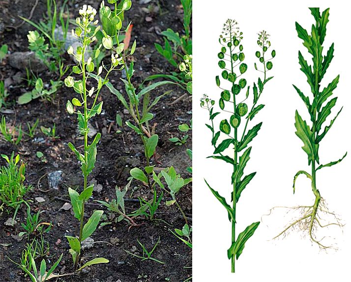 Стебли простые или ветвистые, высотой 10–50 см. Корневище косое с многочисленными тонкими корнями. Нижние листья продолговатые или овальные, черешковые, похожи на одуванчик, а стеблевые — стреловидные, сидячие. Цветок маленький, белый, 4 чашелистика, 4 лепестка, 6 тычинок, 1 пестик. Стручки округлые или округло-овальные, длиной 12–18 мм.