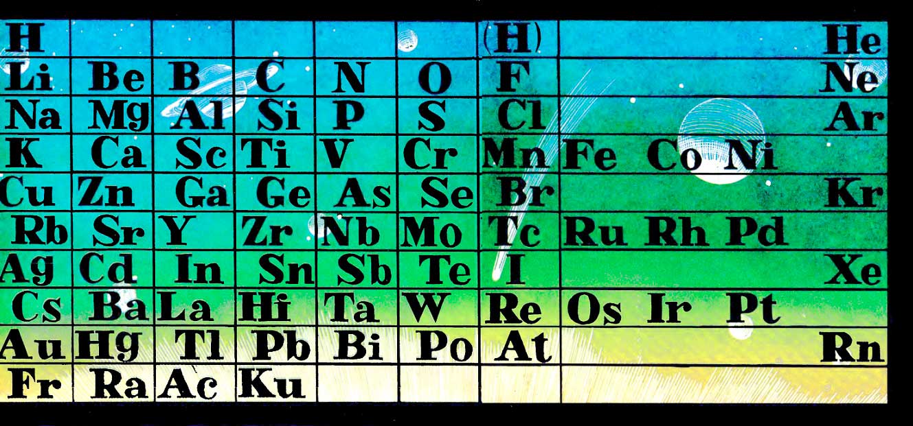 ВЕСЬ МИР БОЛЬШОЙ ОТ «А» ДО «Я», ЗЕМЛЯ И НЕБО, ТЫ И Я, ТРАВА, ПЕСОК И СНЕГОПАД, И ЯДЕР АТОМНЫХ РАСПАД, И СОЛНЦА СВЕТ, И БЛЕСК ЛУНЫ В ТАБЛИЦЕ ТОЙ ЗАКЛЮЧЕНЫ. И СЛОЖНОСТЬ В НЕЙ, И ПРОСТОТА, ВСЕЛЕННОЙ НАШЕЙ КРАСОТА. И В КАЖДОЙ КЛЕТКЕ И?? ?? ?? ??