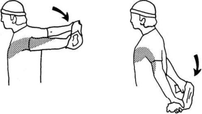 Примечание. Если у вас травмировано (или было травмировано) плечо; будьте очень осторожны. Выполняйте движения медленно и при появлении болезненных ощущений немедленно прекращайте растяжку.