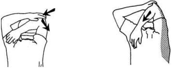 Указательным и большим пальцами одной руки возьмитесь за один из пальцев другой руки. Вращайте каждый палец поочередно по 5 раз по часовой и против часовой стрелки.