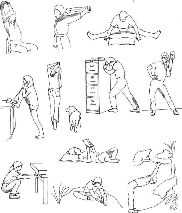 Вы можете растягиваться в любую свободную минуту: читая газету, разговаривая по телефону, ожидая автобуса, вы можете выполнять расслабляющее растягивание. Проявите выдумку; попробуйте с пользой употребить время, которое обычно теряется понапрасну.