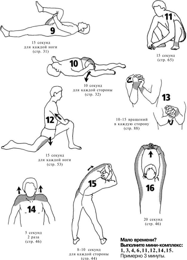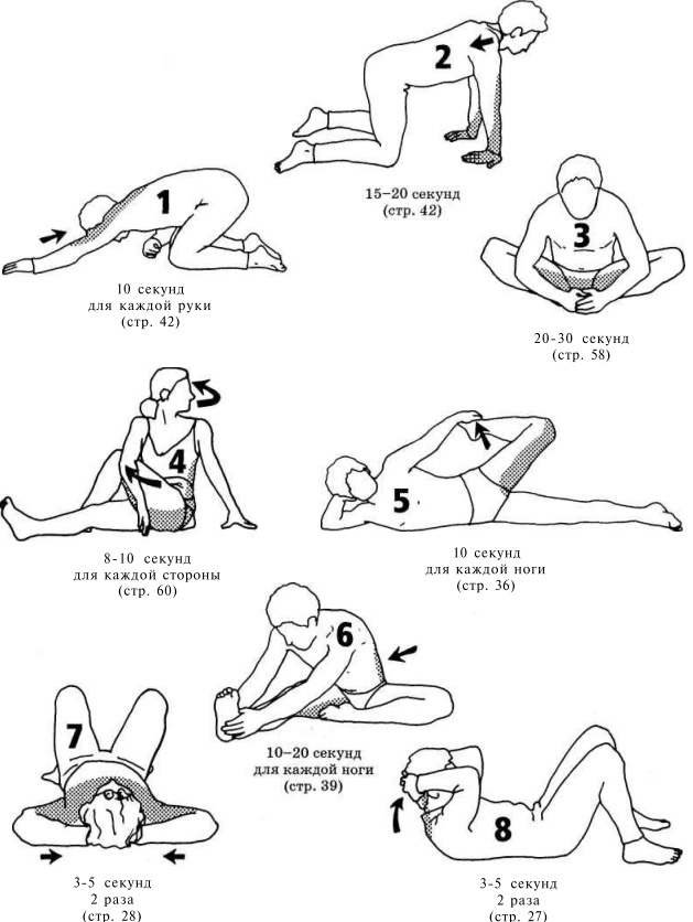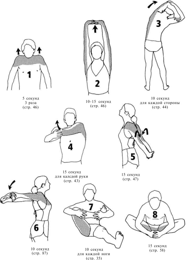 С недавних пор растягивание получило широкое распространение в качестве профилактического средства борьбы с травматизмом, но даже здесь возобладал максималистский подход к развитию гибкости. Ошибка сторонников такого подхода в том, что растягивание — процесс сугубо индивидуальный. Объясните своим ученикам, что в нем нет места соревнованию. Учащимся не следует сравнивать свои достижения с достижениями остальных членов группы, потому что каждый человек по-своему уникален. Основное внимание нужно уделять тому, чтобы человек чувствовал растягивающее напряжение, а не пытался через силу добиться максимальной амплитуды движений. Чрезмерные нагрузки в начальной стадии процесса развития гибкости ведут только к перенапряжению, отрицательному отношению к упражнениям и, как следствие, к возможным травмам. Если вы заметили у кого-то из членов группы особую жесткость мыщц или тугоподвижность в суставах, предложите ему индивидуальный комплекс упражнений, которым он мог бы позаниматься на досуге, отдельно от группы.