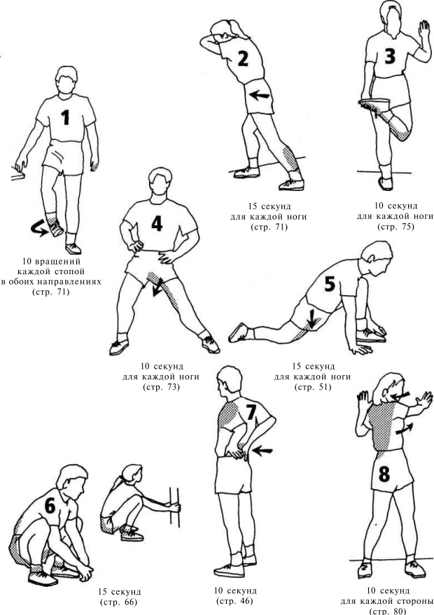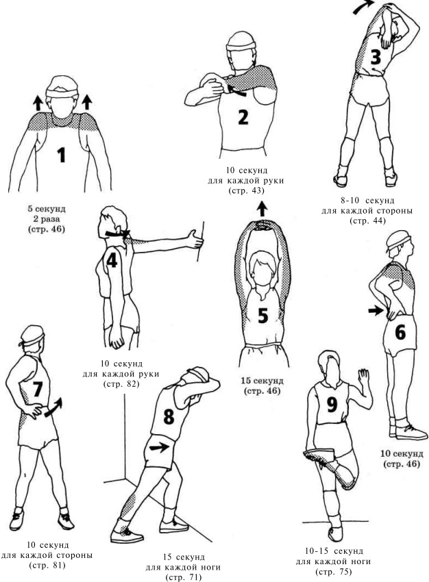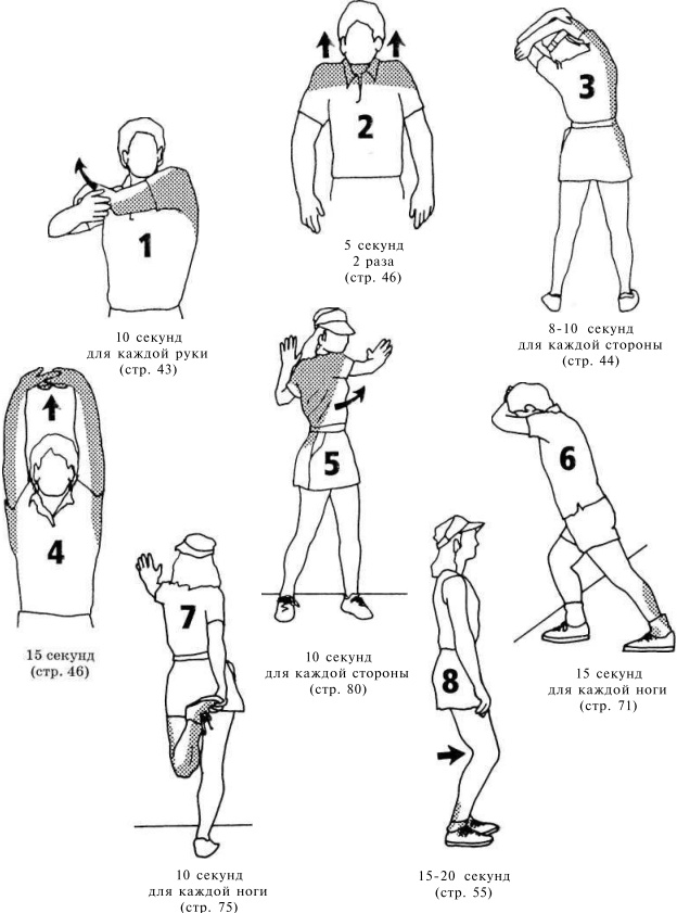 Перед растягиванием — 2–3 минуты ходьбы, размахивая руками.